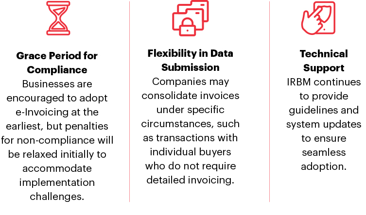 While e-Invoicing is now in effect for Phase 2 businesses, IRBM has provided an interim relaxation period to ease the transition. This relaxation allows businesses to make necessary adjustments to their invoicing processes and IT infrastructure. Key aspects of this relaxation include: