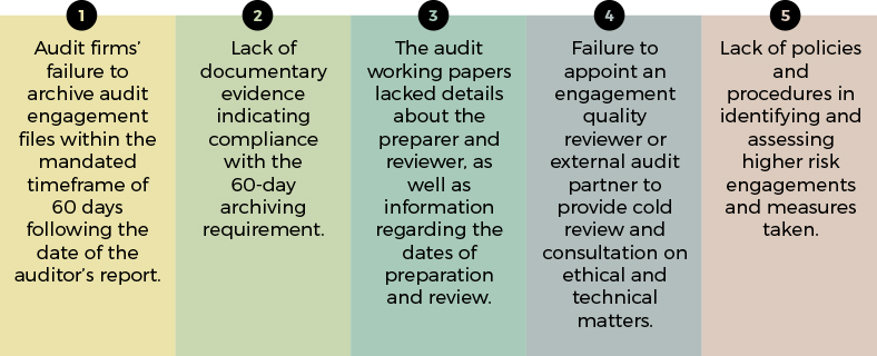 The findings from the QAP and MIA Practice Review reinforce the need for firms to strengthen their governance structures, risk management processes, and monitoring mechanisms. Addressing these deficiencies is crucial to improving audit quality, maintaining regulatory compliance, and enhancing public trust in financial reporting.