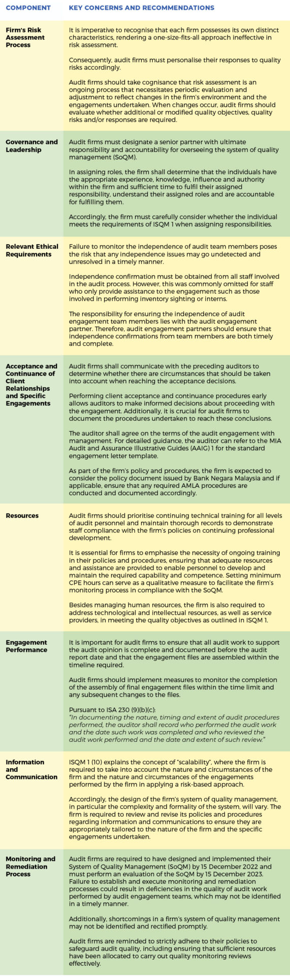 Below are the key recommendations derived from the MIA Practice Review Report 2024 and QAP reports that audit firms can take to fortify their quality management systems.