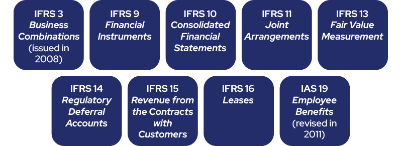 In the final scope of the Review, the IASB included 2018 Conceptual Framework for Financial Reporting (the Framework), nine IFRS Accounting Standards (see diagram below) and forty-two amendments to the IFRS Accounting Standard and IFRIC Interpretations⁴.