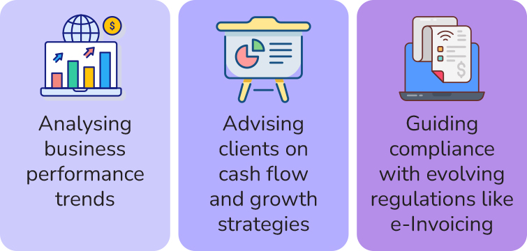 Cloud platforms can now process transactions, match payments, and generate reports in real-time. Instead of spending hours keying in figures, accountants can shift their focus to higher-value activities such as: