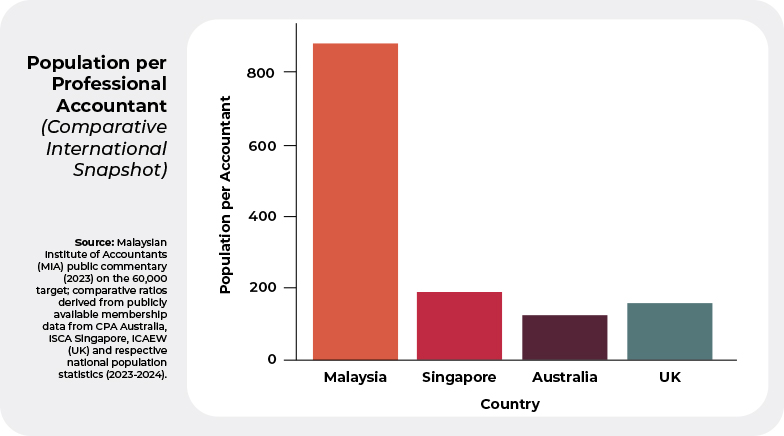Yet Malaysia continues to face a structural shortage of professional accountants. Compared to developed economies, our accountant-to-population ratio remains significantly lower. Our long-standing national aspiration of building a pool of 60,000 professional accountants is not merely about expanding a profession but strengthening national capacity.