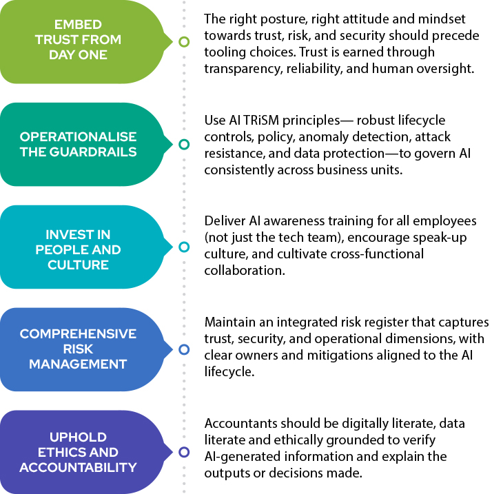 A key challenge for organisations adopting AI is ensuring that trust, risk, and security are not treated in isolation. In practice, organisations should foster a unified approach to managing these three elements rather than allowing each to operate independently.